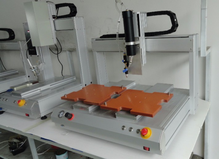 噴射點(diǎn)膠機(jī)主要用于產(chǎn)品工藝中的膠水、油漆以及其他液體精確點(diǎn)、注、涂、點(diǎn)滴到每個(gè)產(chǎn)品精確位置,可以用來(lái)實(shí)現(xiàn)打點(diǎn)、畫(huà)線、圓型或弧型。